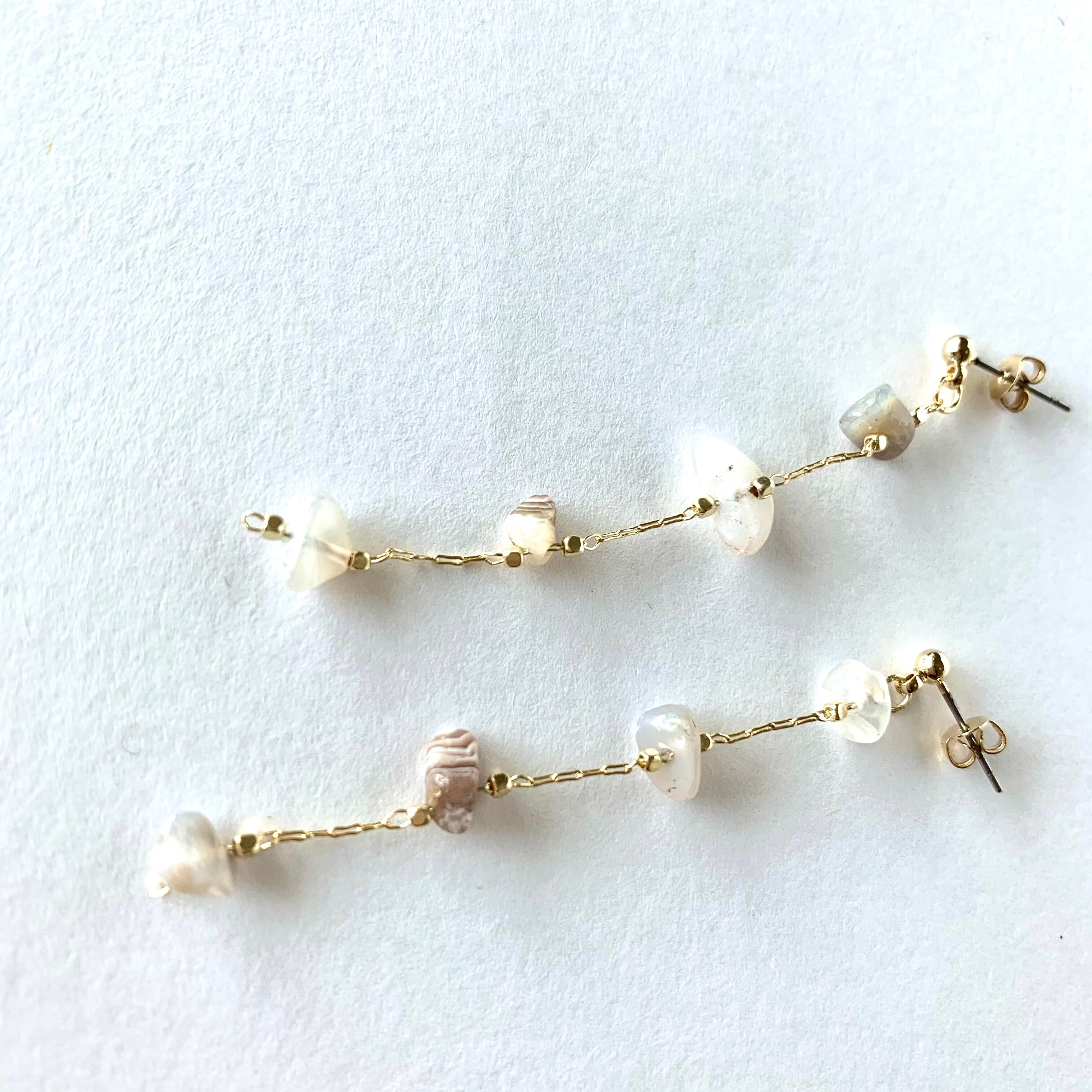 アースカラー(薄め)の天然石のロングピアスです.