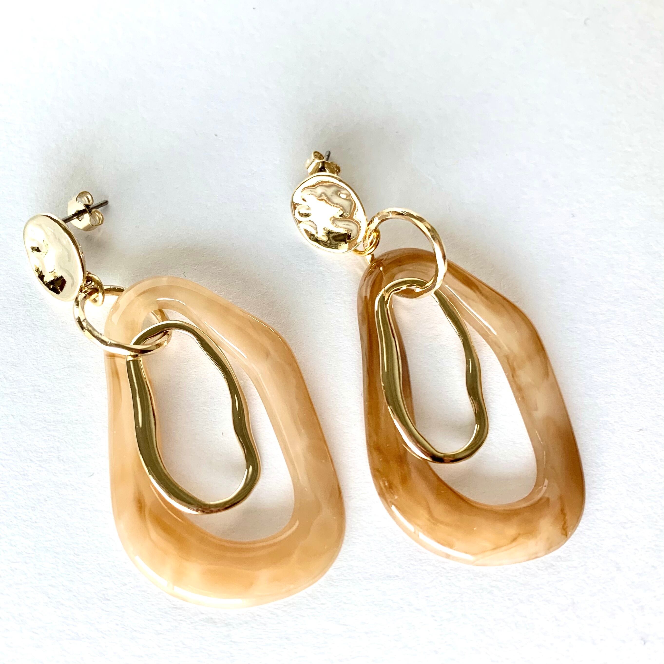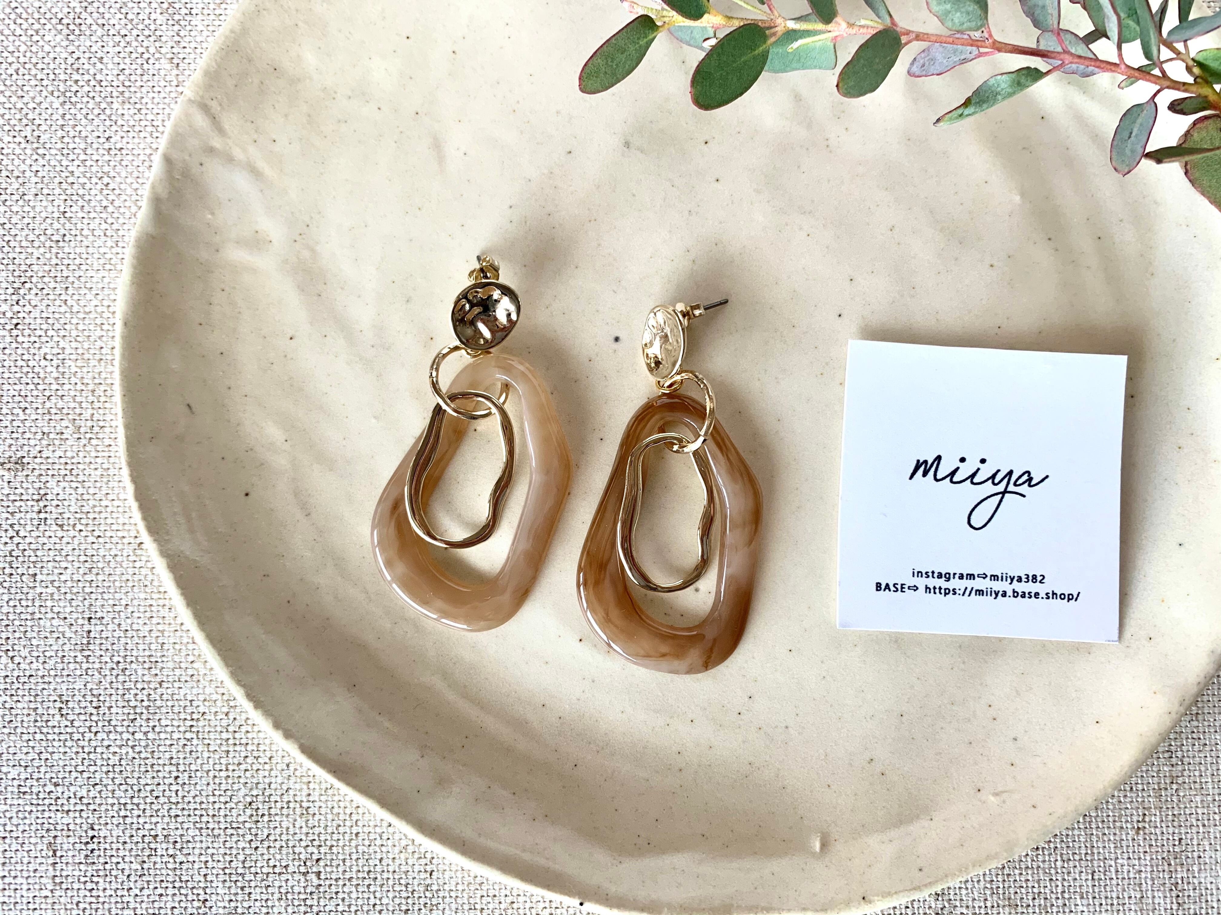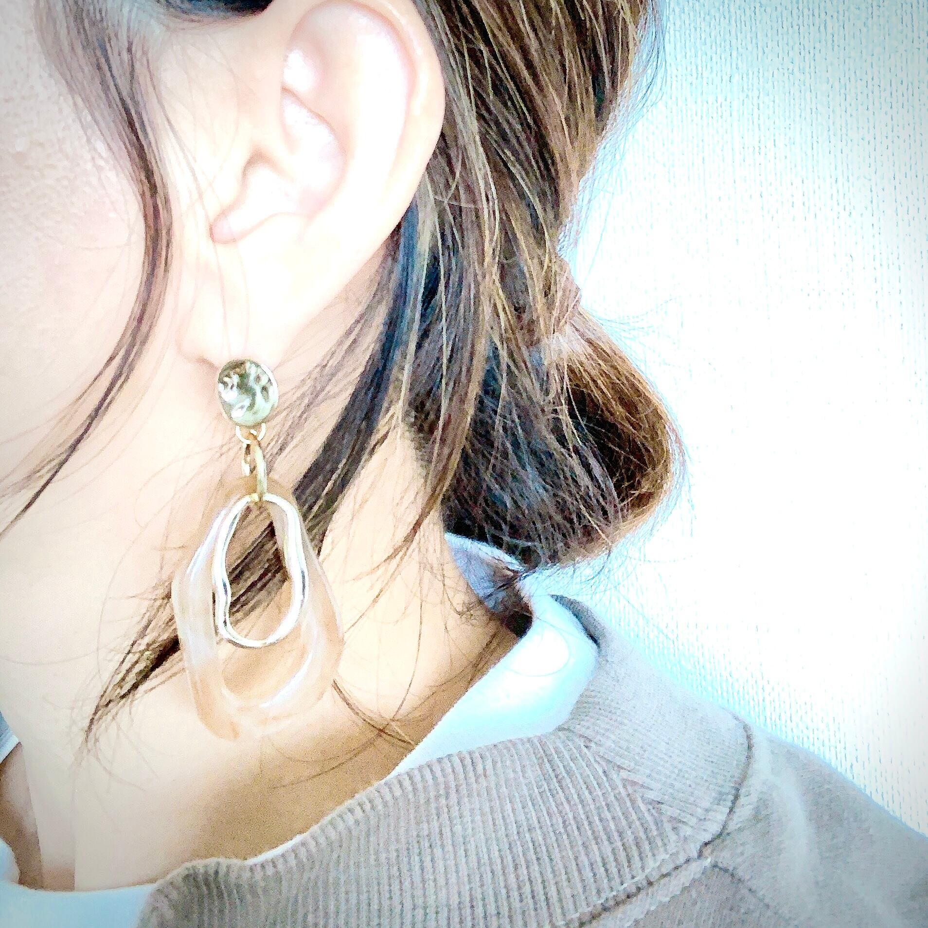天然石風アクリルマーブルフープ✖︎変形ゴールドフープを組み合わせました.