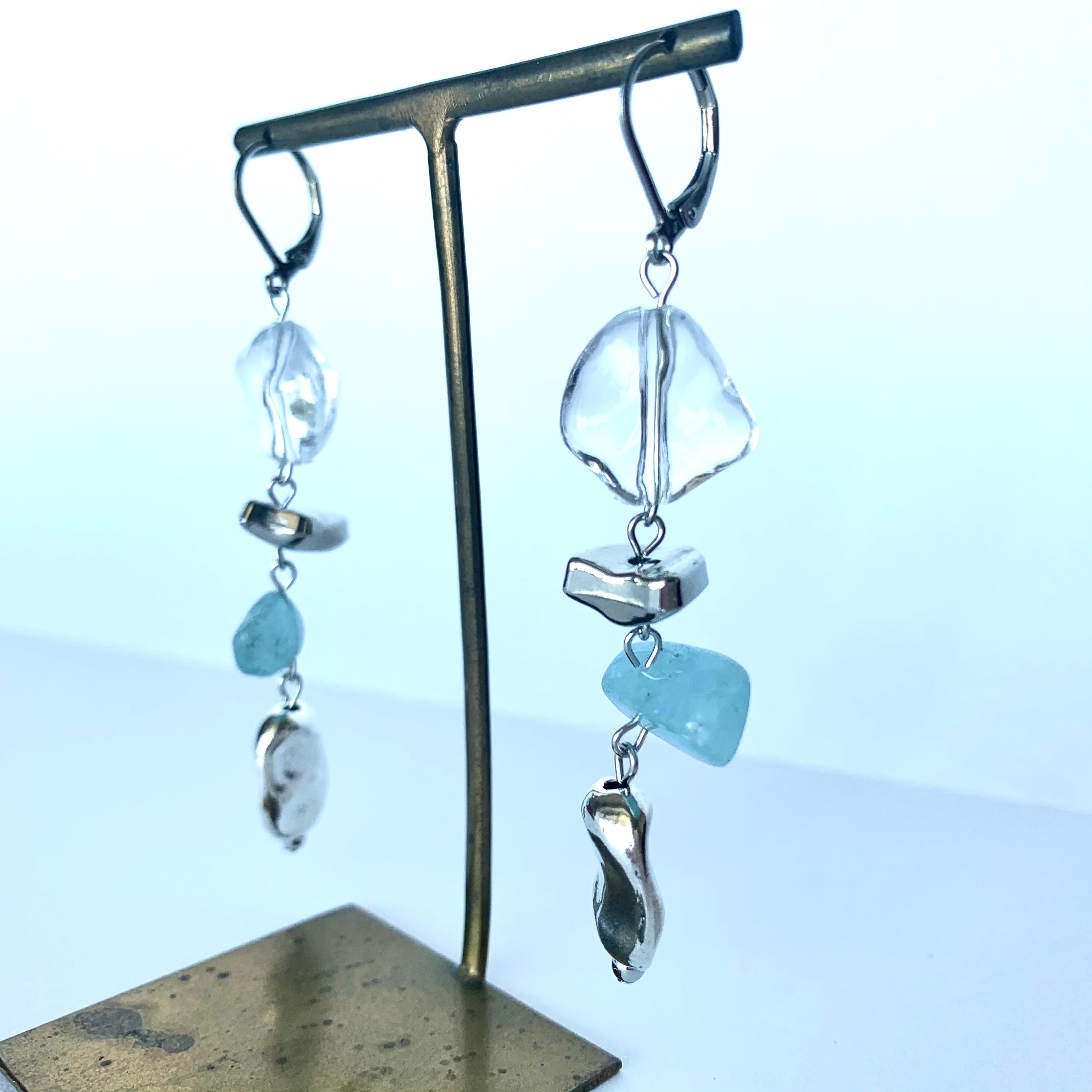 クリア✖︎シルバー✖︎アクアマリンピアス シルバー