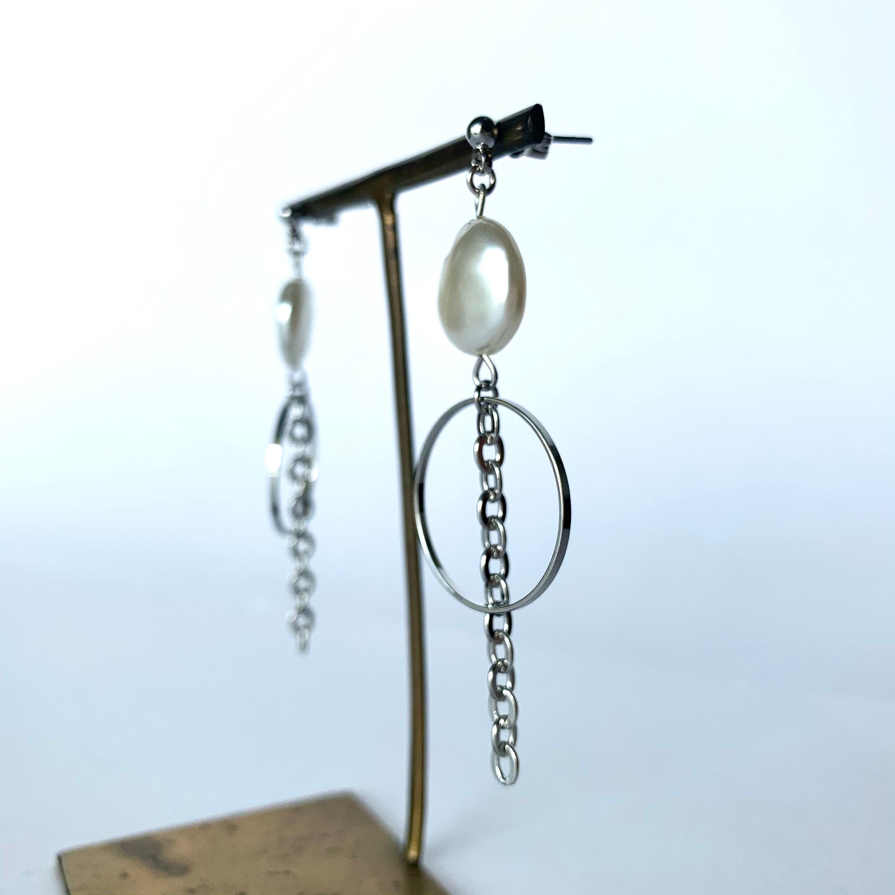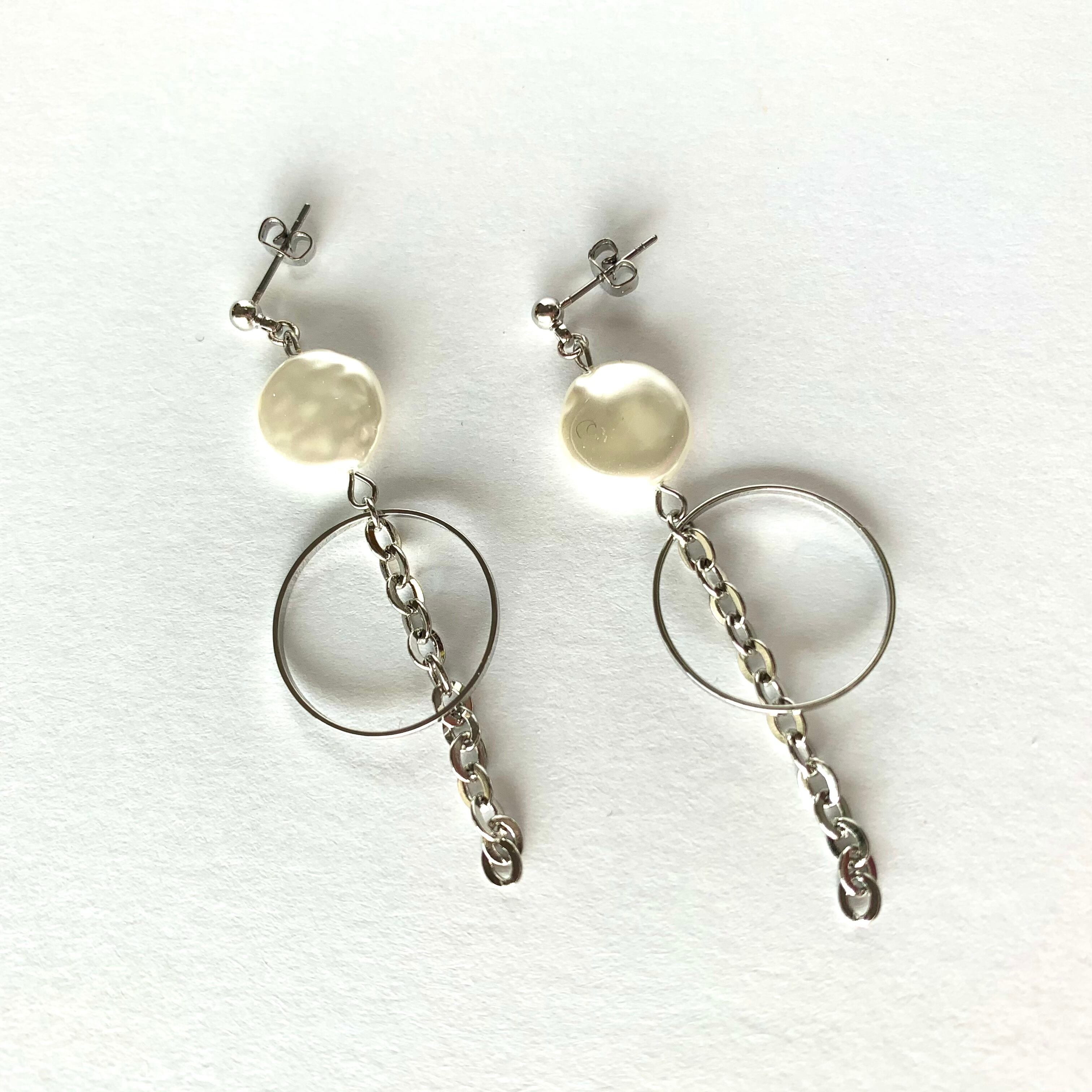 コインアクリルパールとシルバーフープとシルバーチェーンを掛け合わせました.