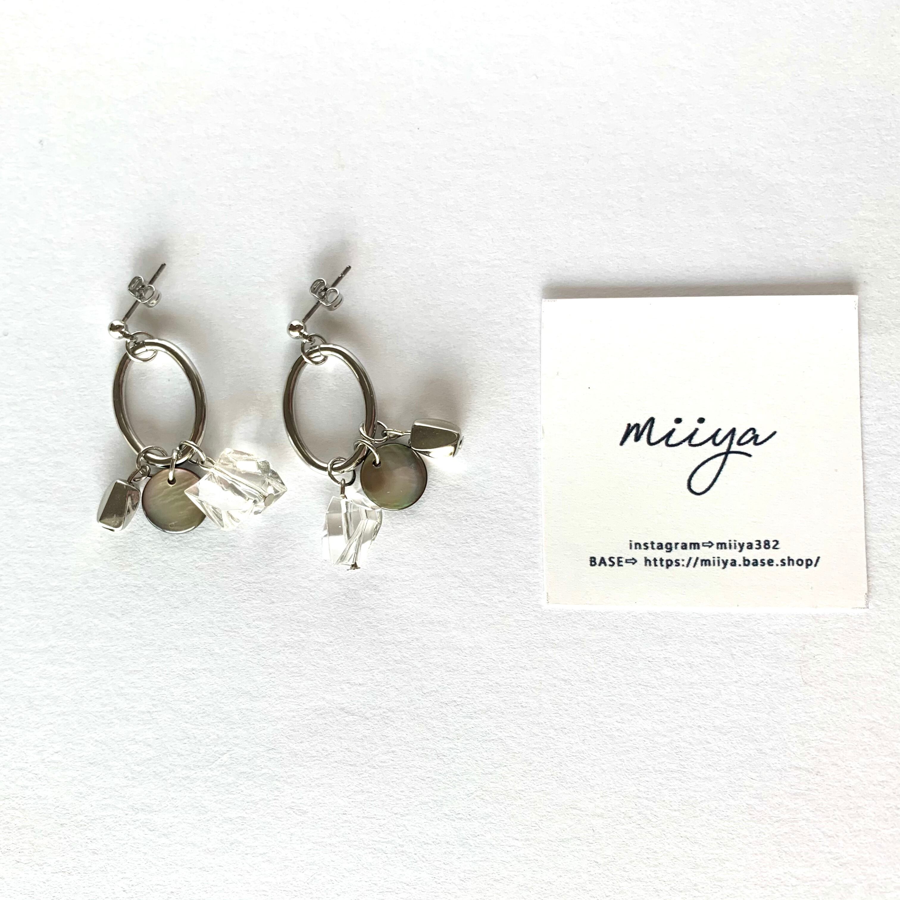 ブラックシェル✖︎クリア✖︎シルバーピアス