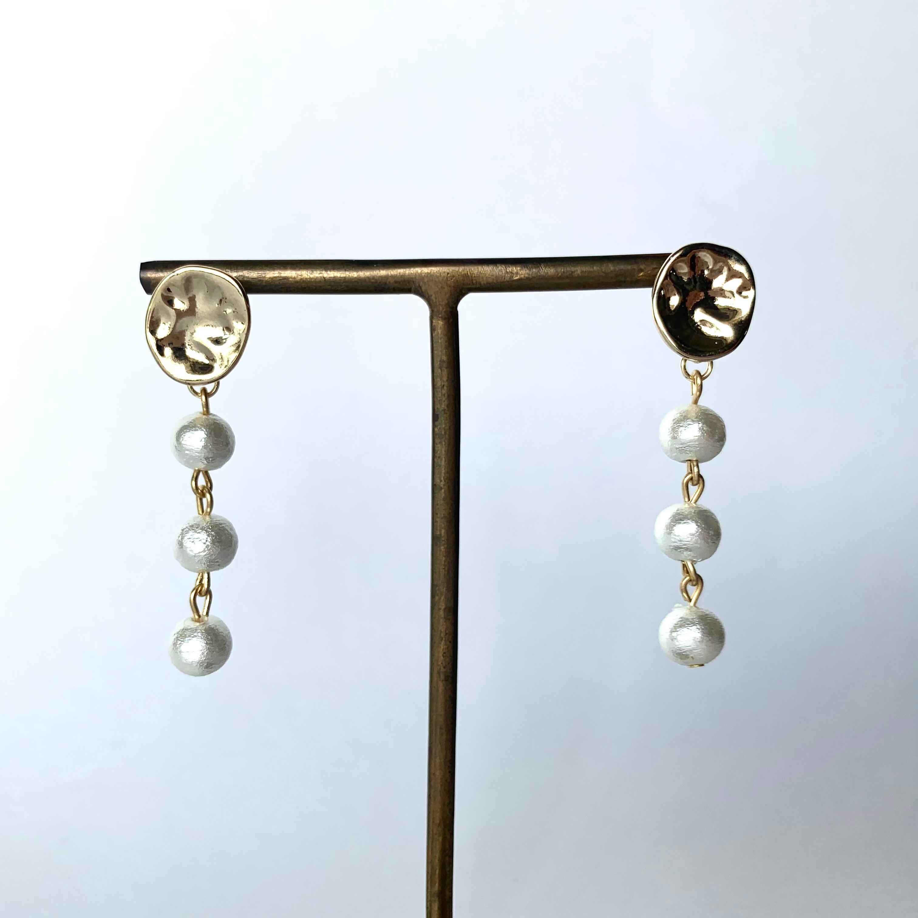3個のコットンパールをメタルゴールドキャッチに繋げてみました.