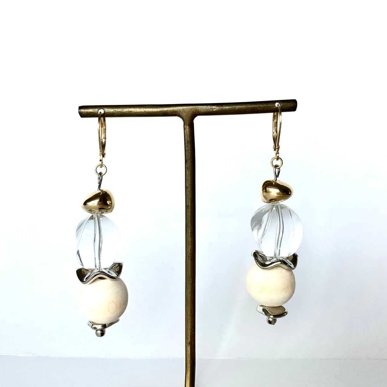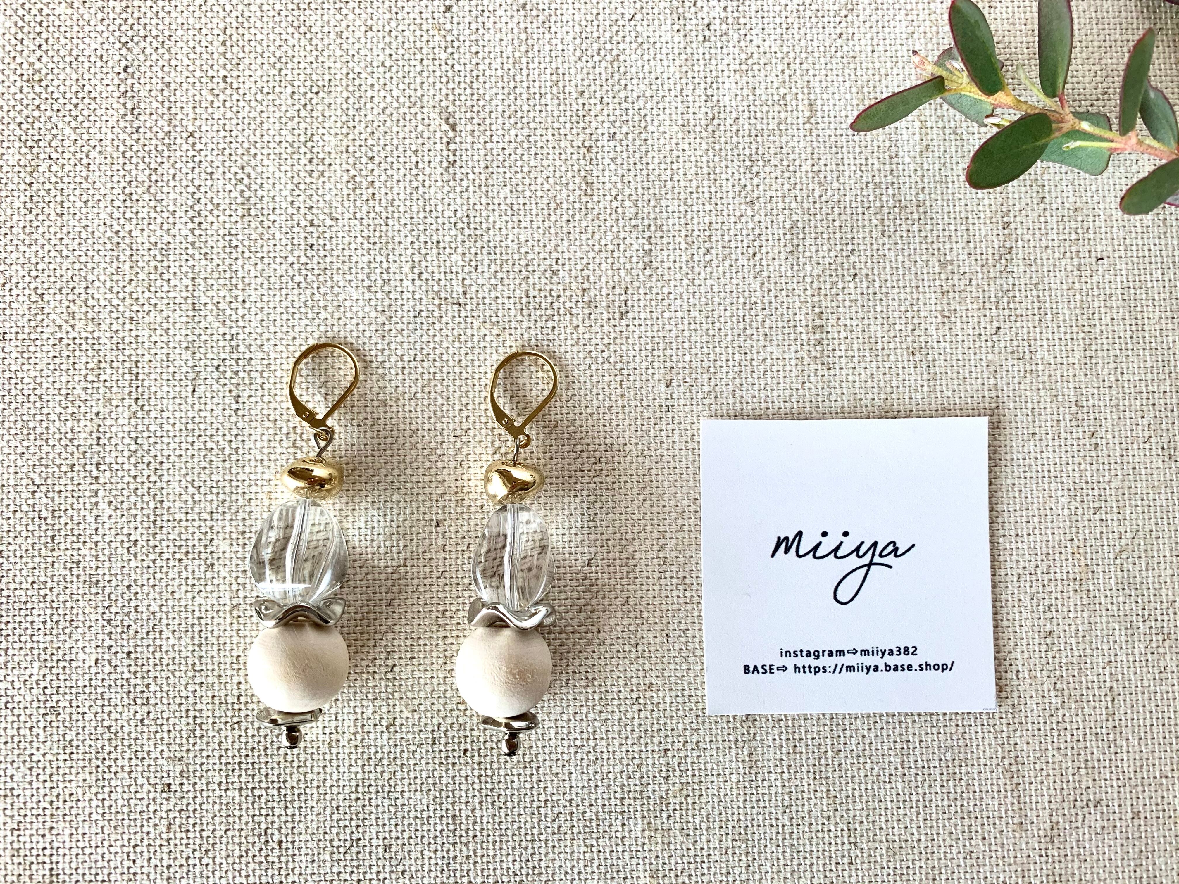 クリア✖︎ナチュラルウッド✖︎ゴールド✖︎シルバーピアス