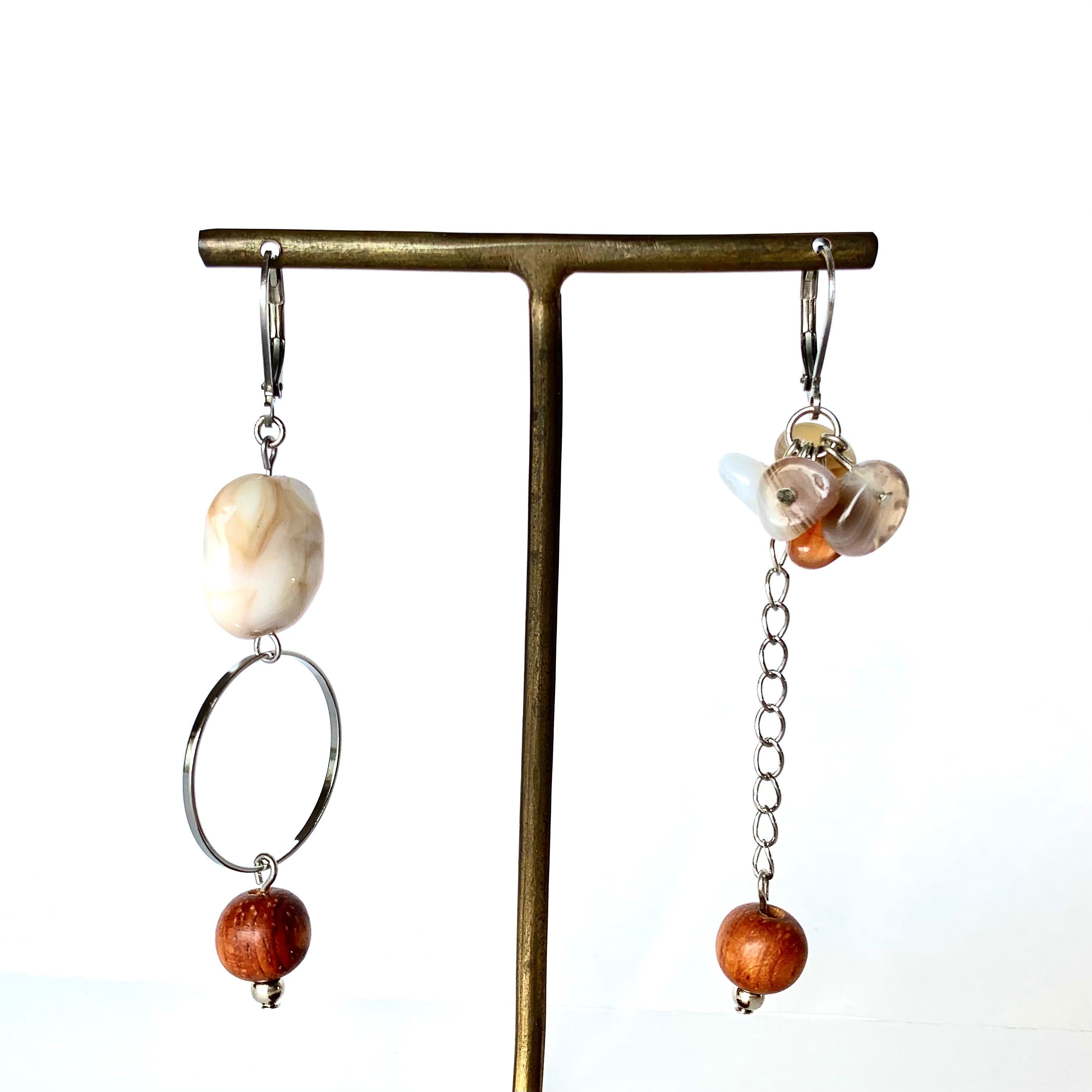 ボツワナアゲート✖︎ベージュフェイクストーン✖︎ブラウンウッド✖︎シルバーピアス