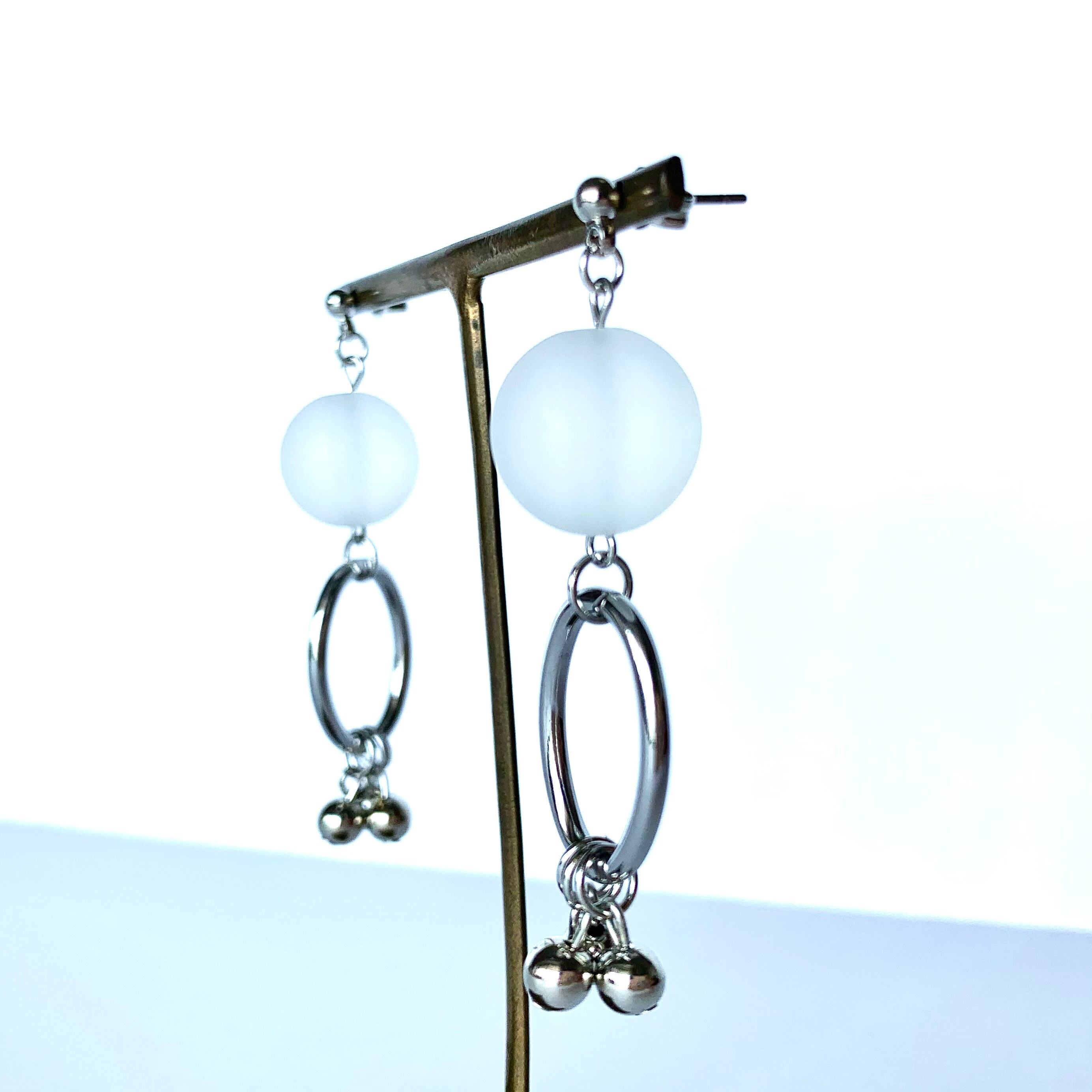 すりガラスのようなボールにシルバーフープとシルバービーズを組み合わせてみました.