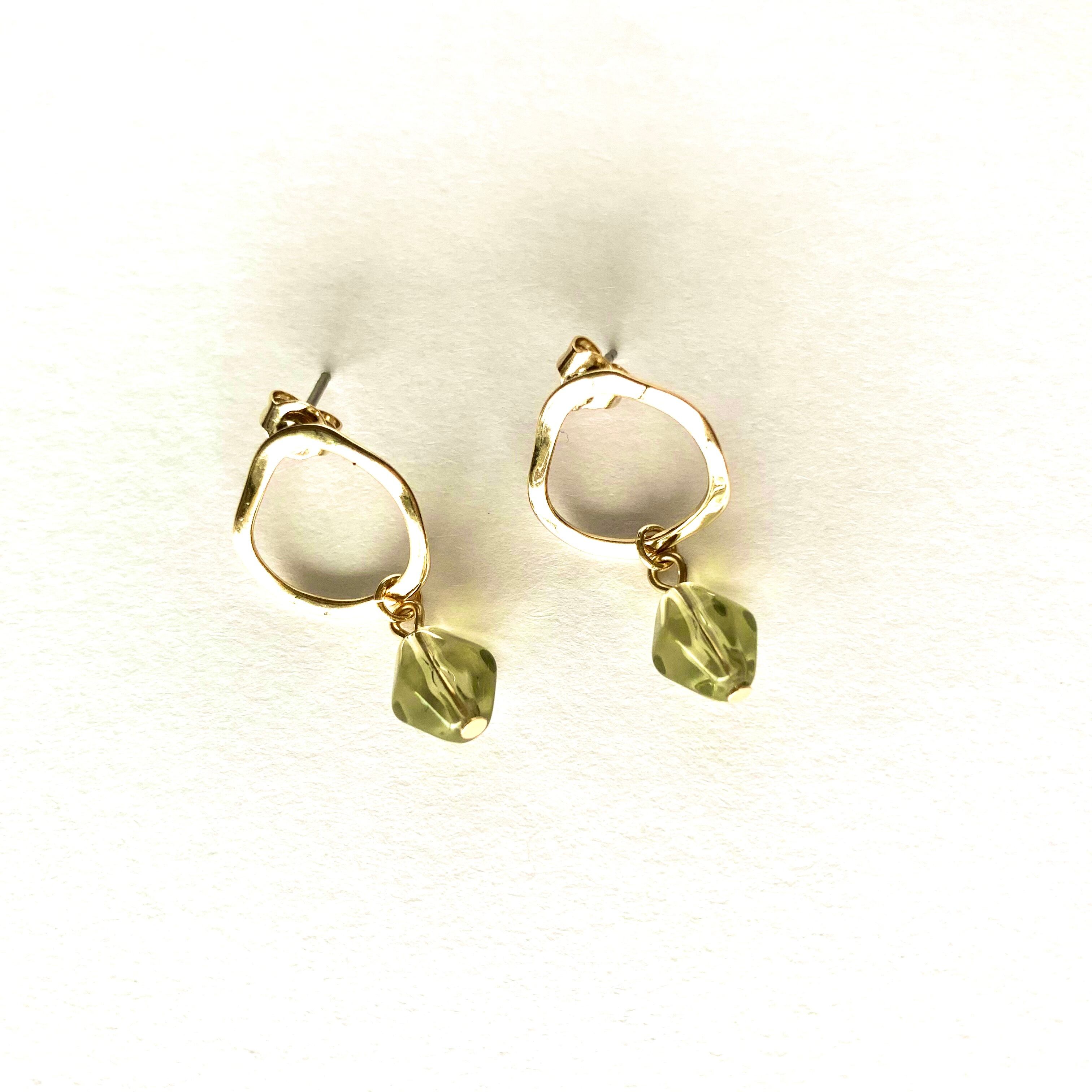USA vintage オリーブ色のビーズをシンプルにフープピアスに合わせました.