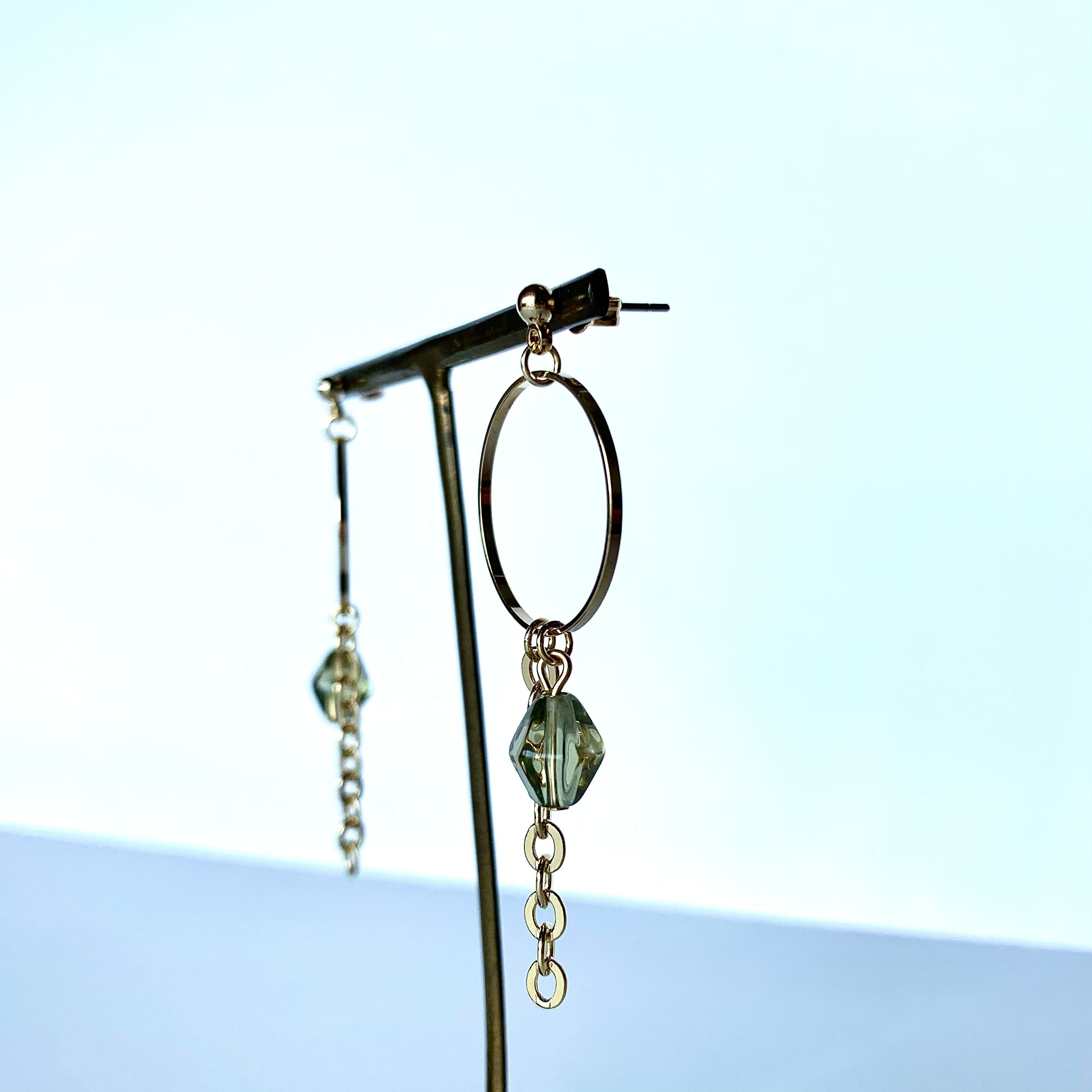 USA vintage オリビングリーンビーズ✖︎フープチェーンピアス