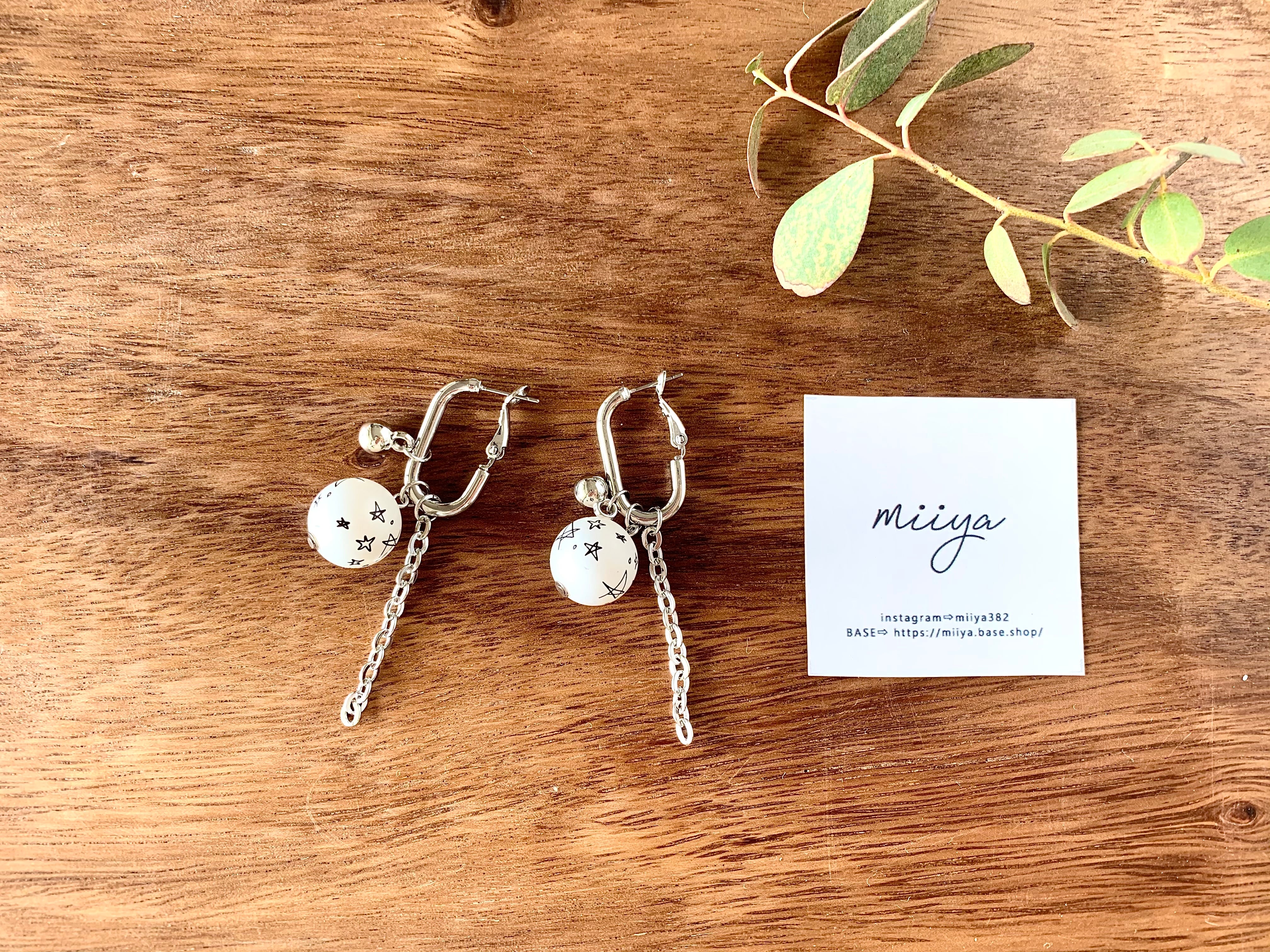 スターボールにシルバーチャームやチェーンを組み合わせました。