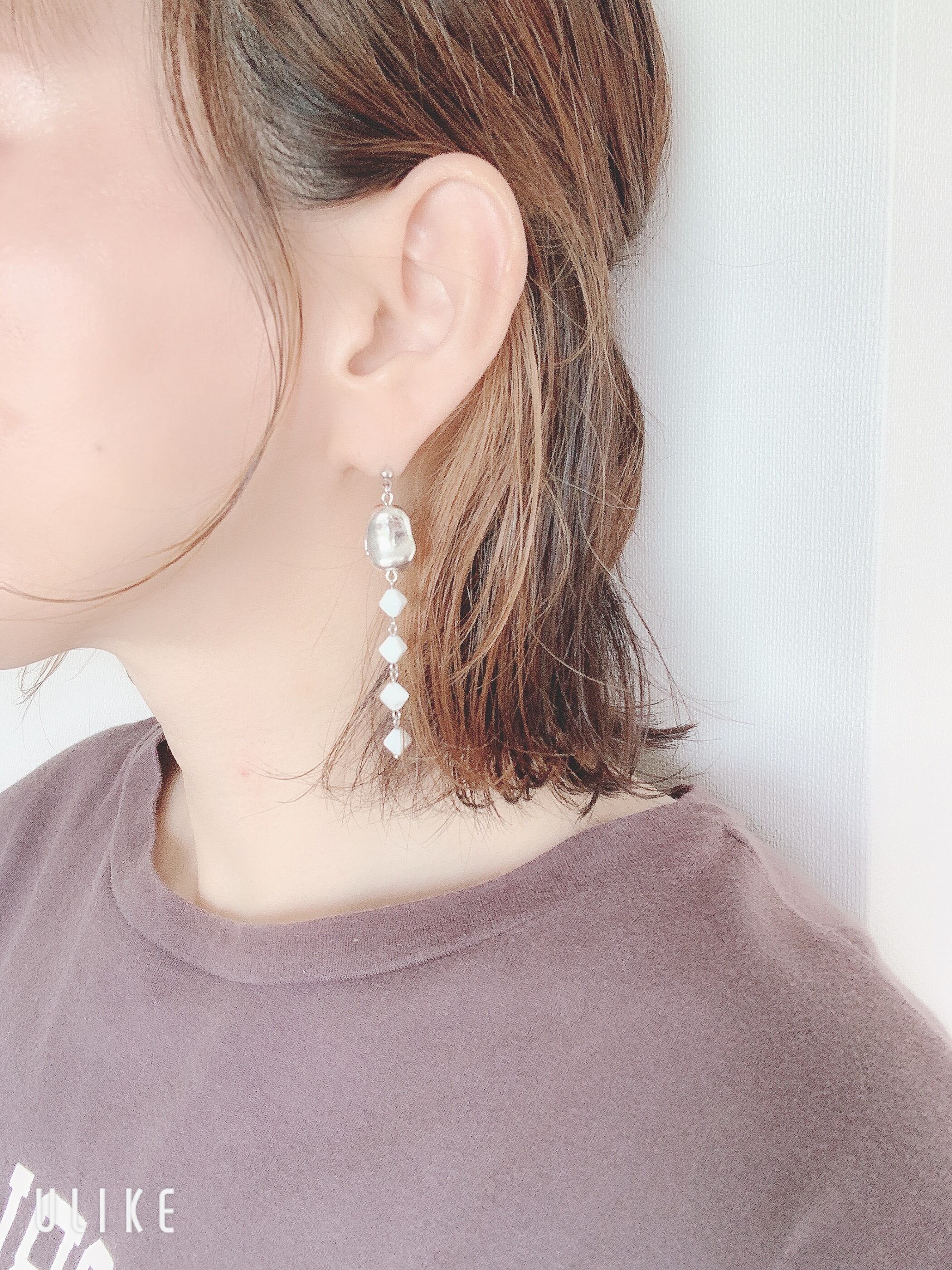 存在感があり、ぷらぷら揺れる白いビーズが爽やかでいて個性的な印象です。