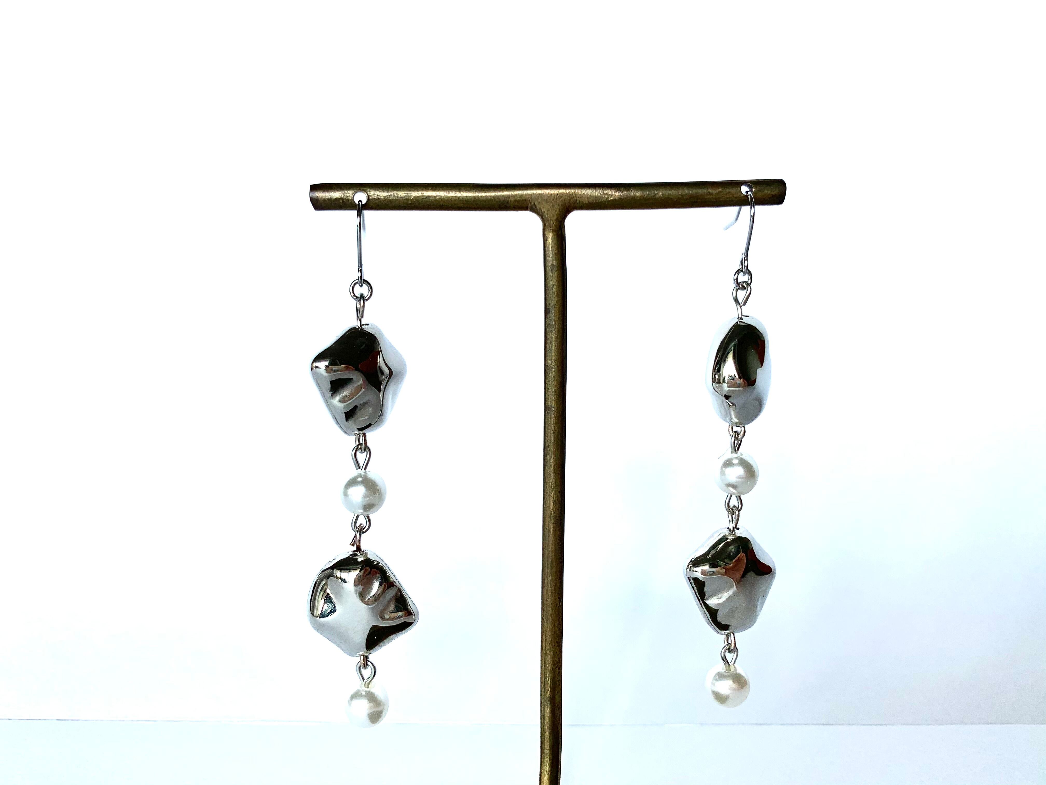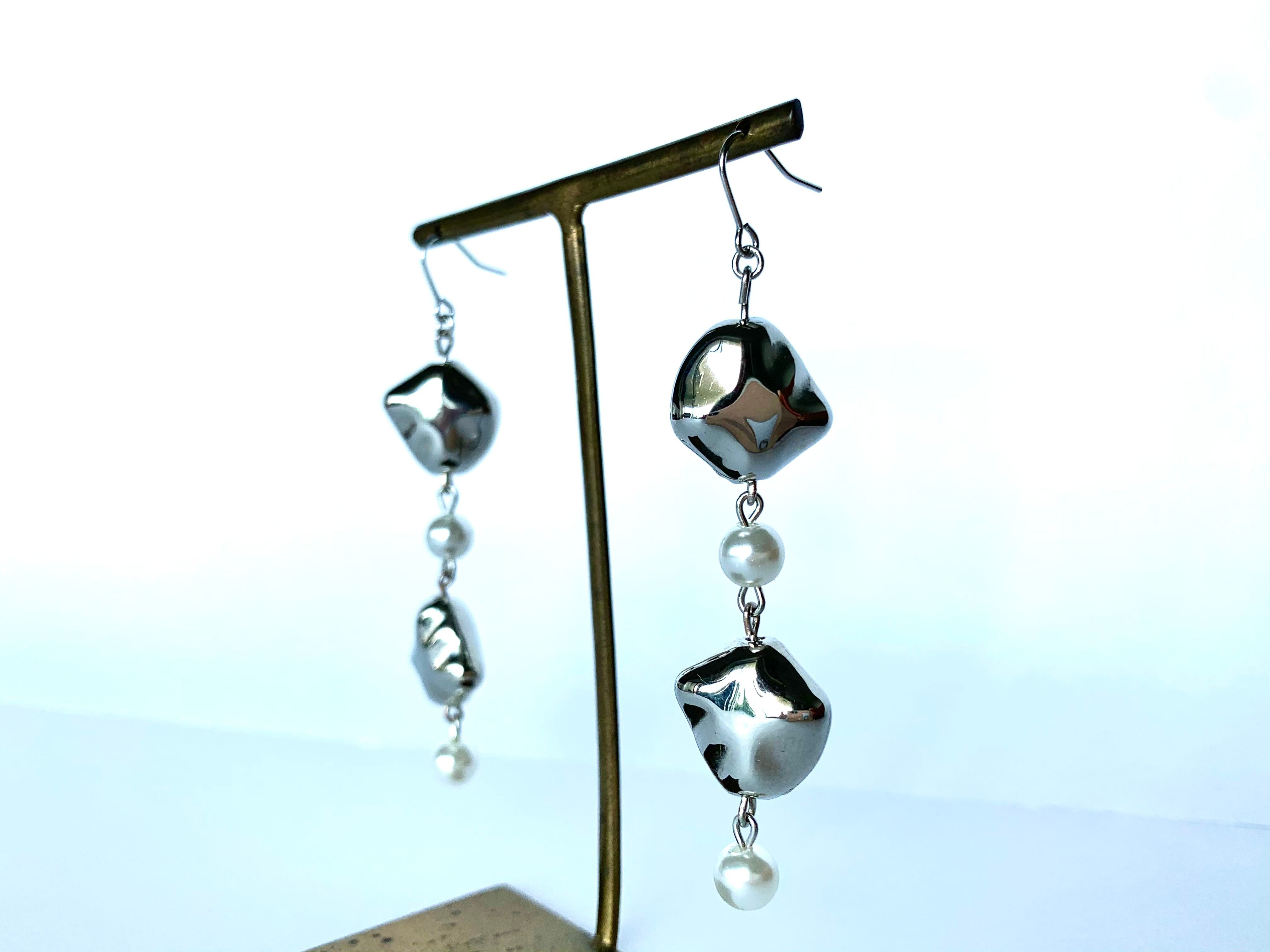 ナゲットのようなコロンとした形のシルバーと大きすぎず小さすぎずのパールを連ねてみました。