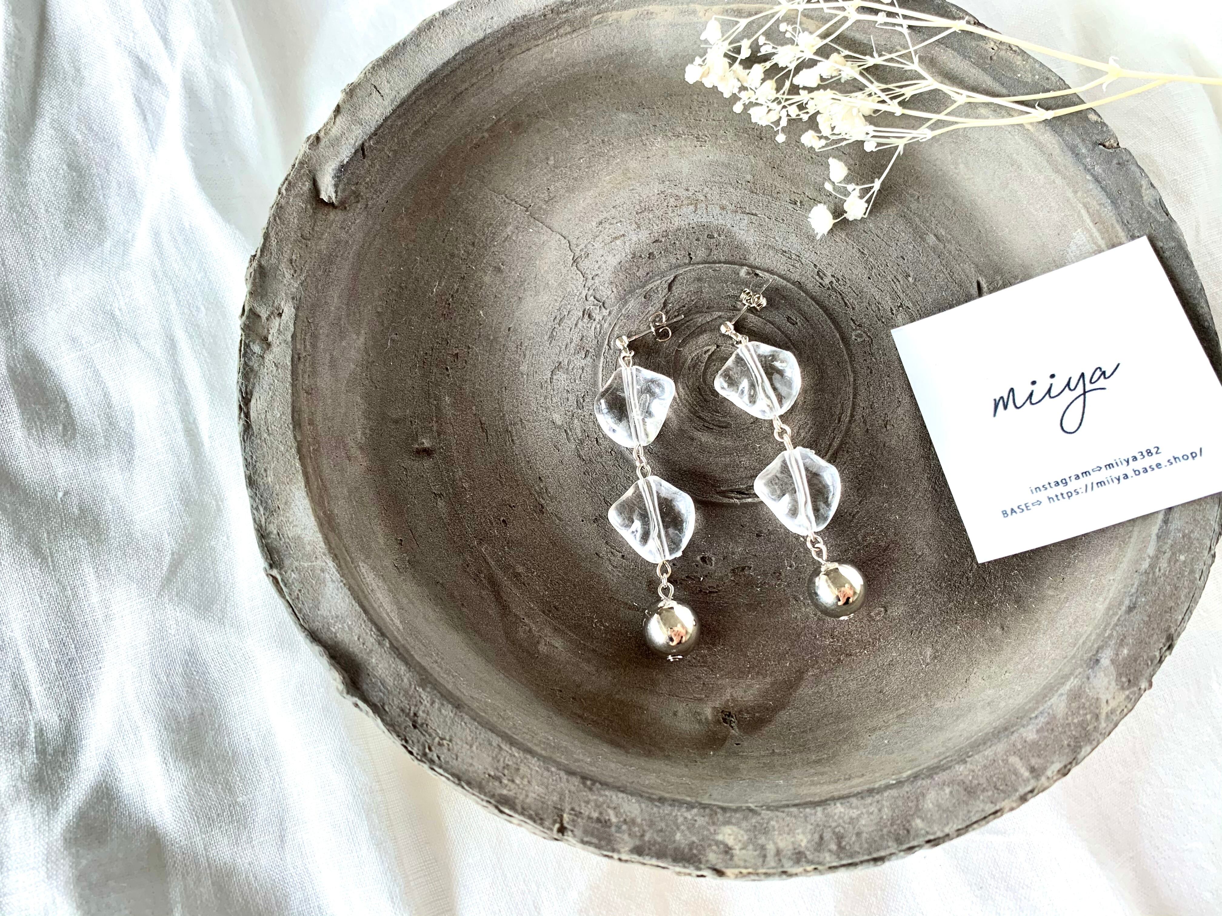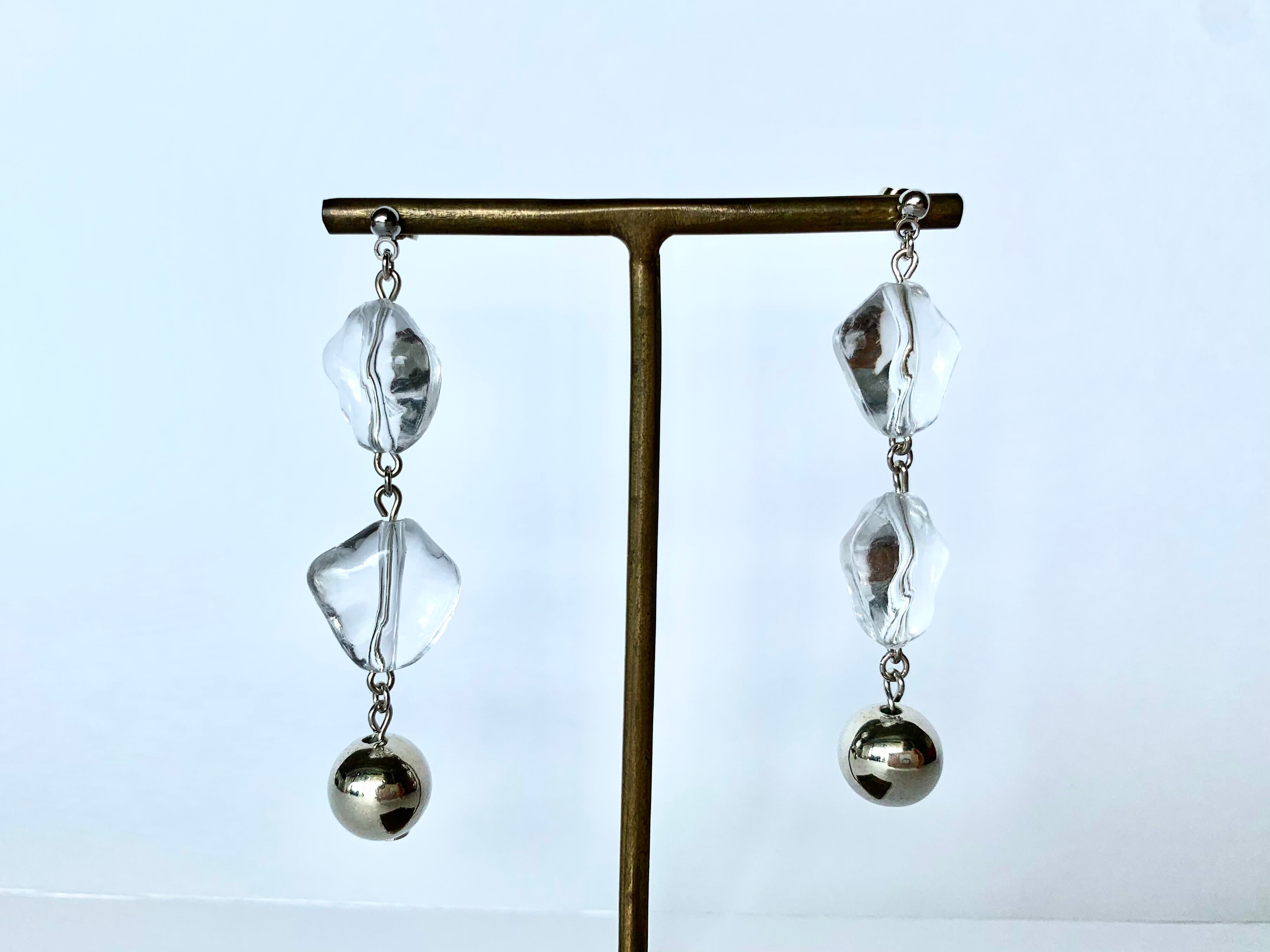 氷の様な形のクリアビーズ2つとシルバーボールを連ねました。