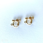 オーバル型のクリアビーズにパールとゴールドボールをくねくねピンで組み合わせました。