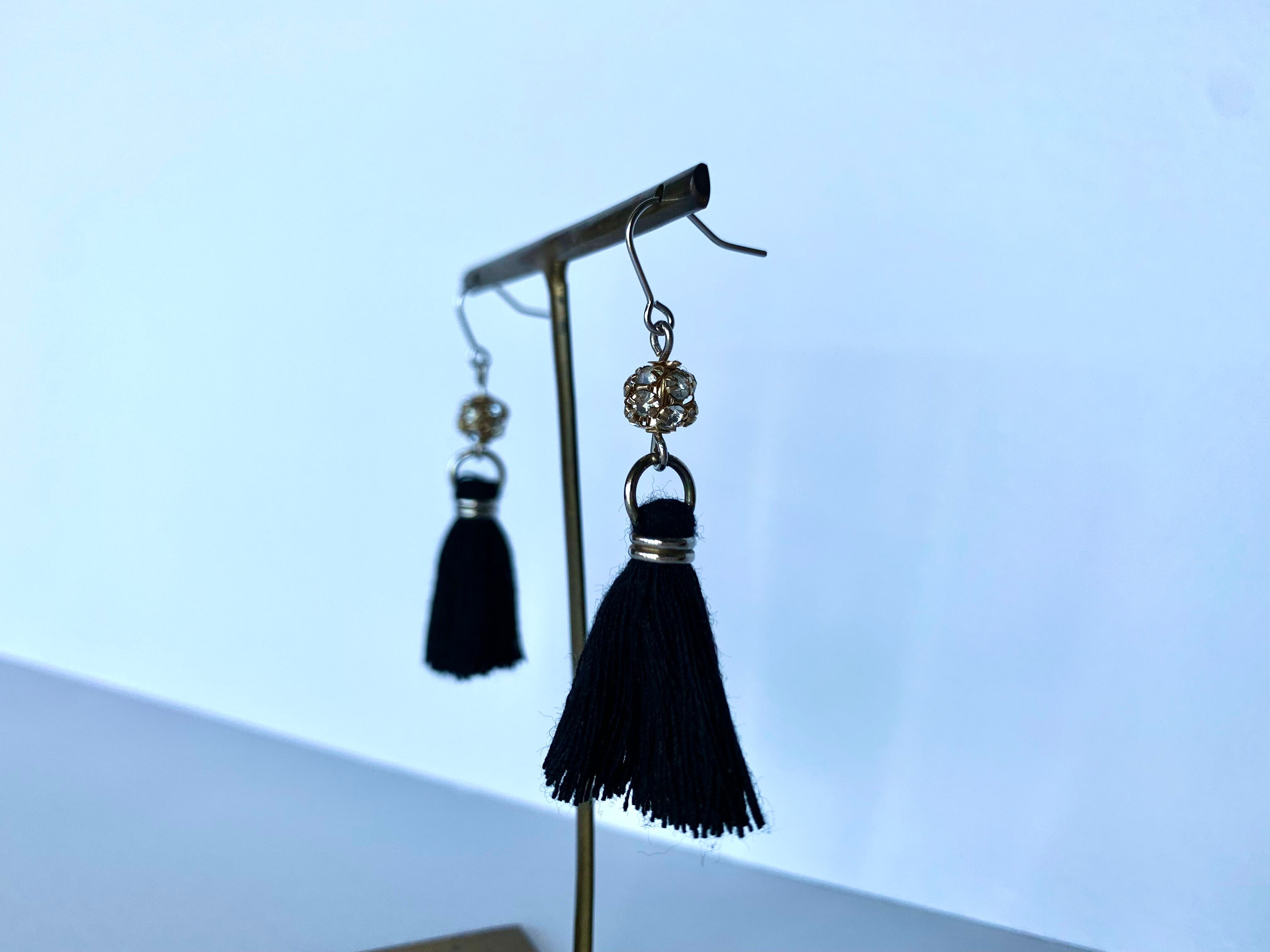 長さ2.2cm、幅1.5cmのブラックタッセルにラインストーンボールを組み合わせました。