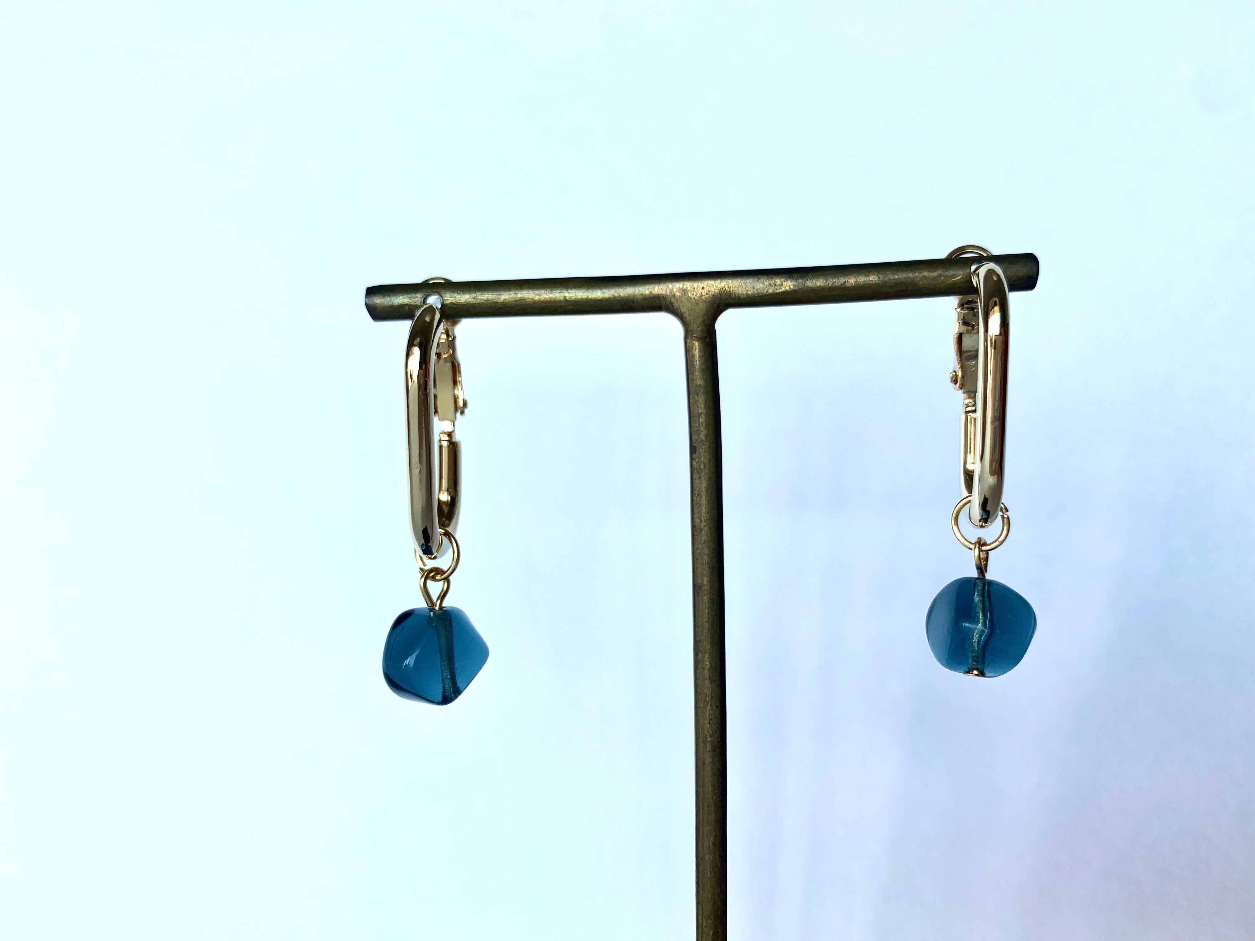 不規則な形のチェコガラスネイビービーズをシンプルにゴールドフープと組み合わせました。
