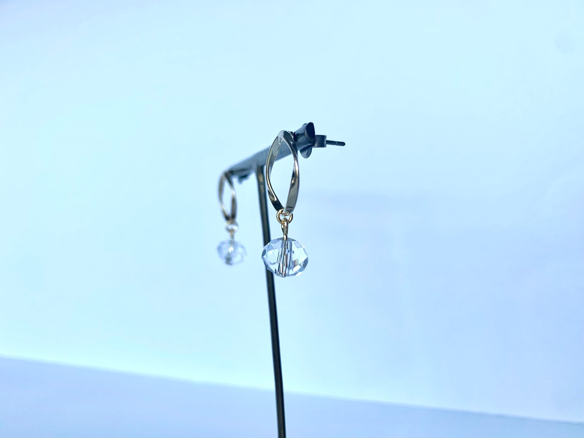 ダイヤカットクリアビーズとゴールドフープピアスを組み合わせました。