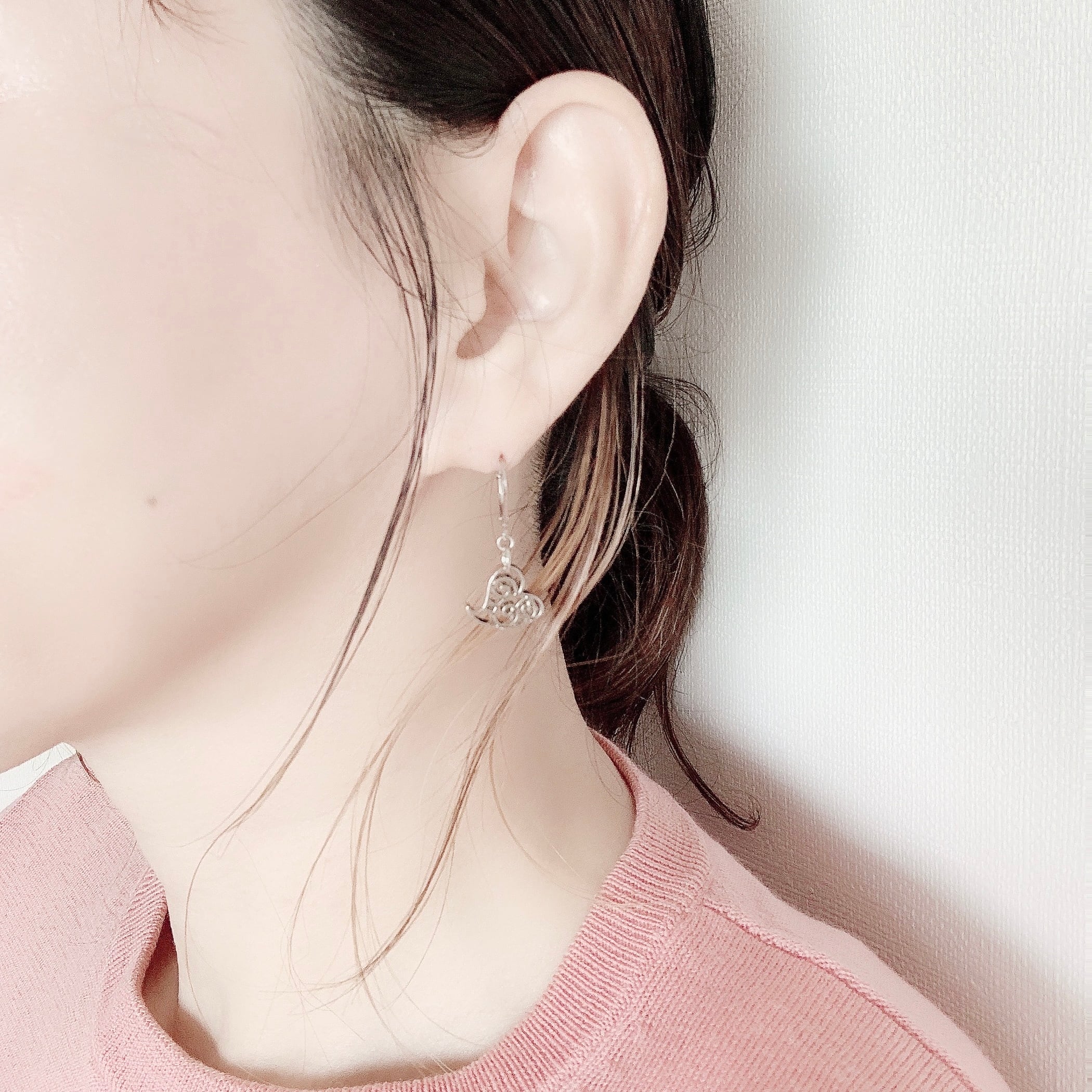 フランス製レトロハートシルバーピアス