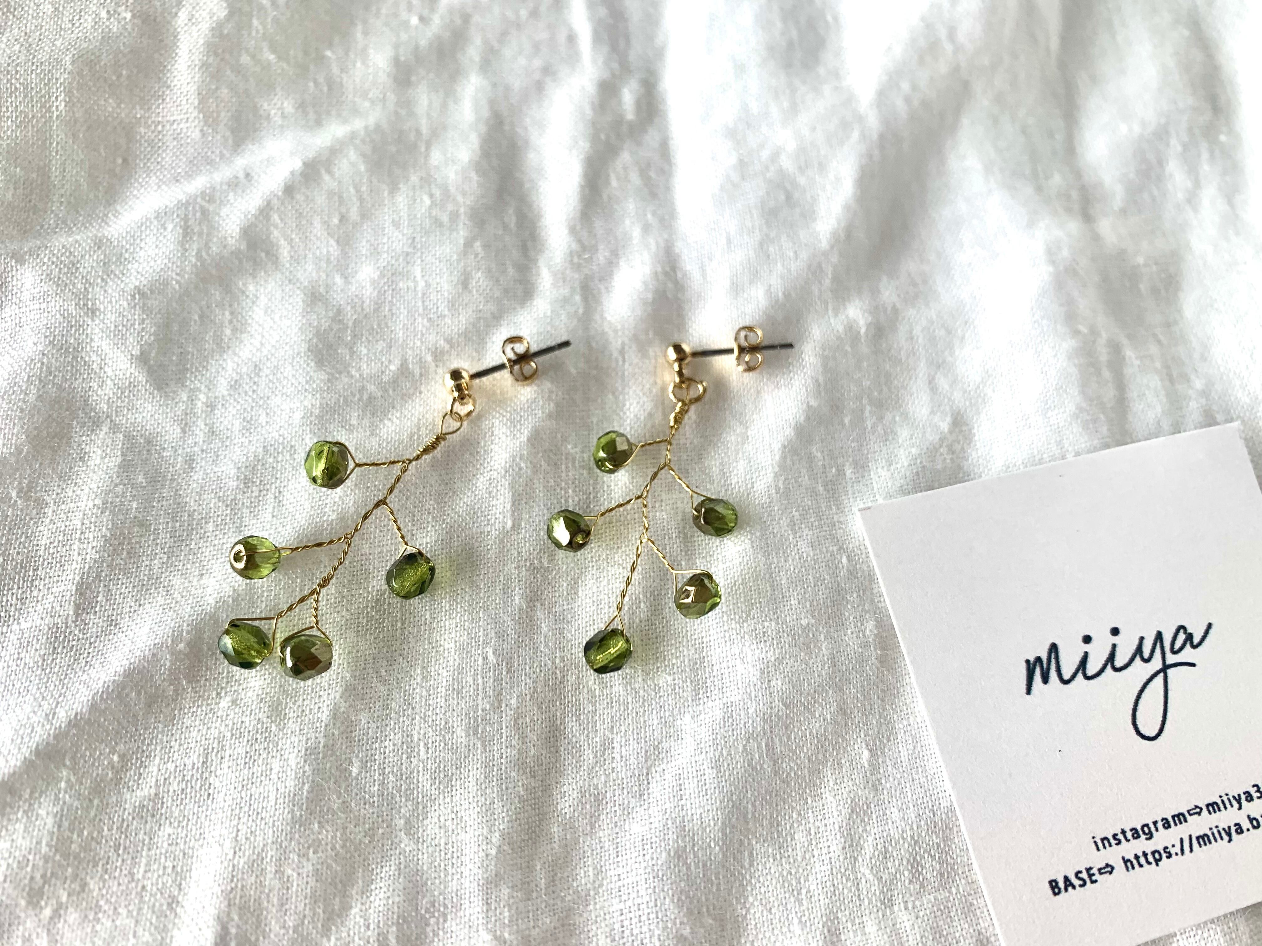 グリーンファイヤーポリッシュを小枝から葉っぱが出るように制作しました。