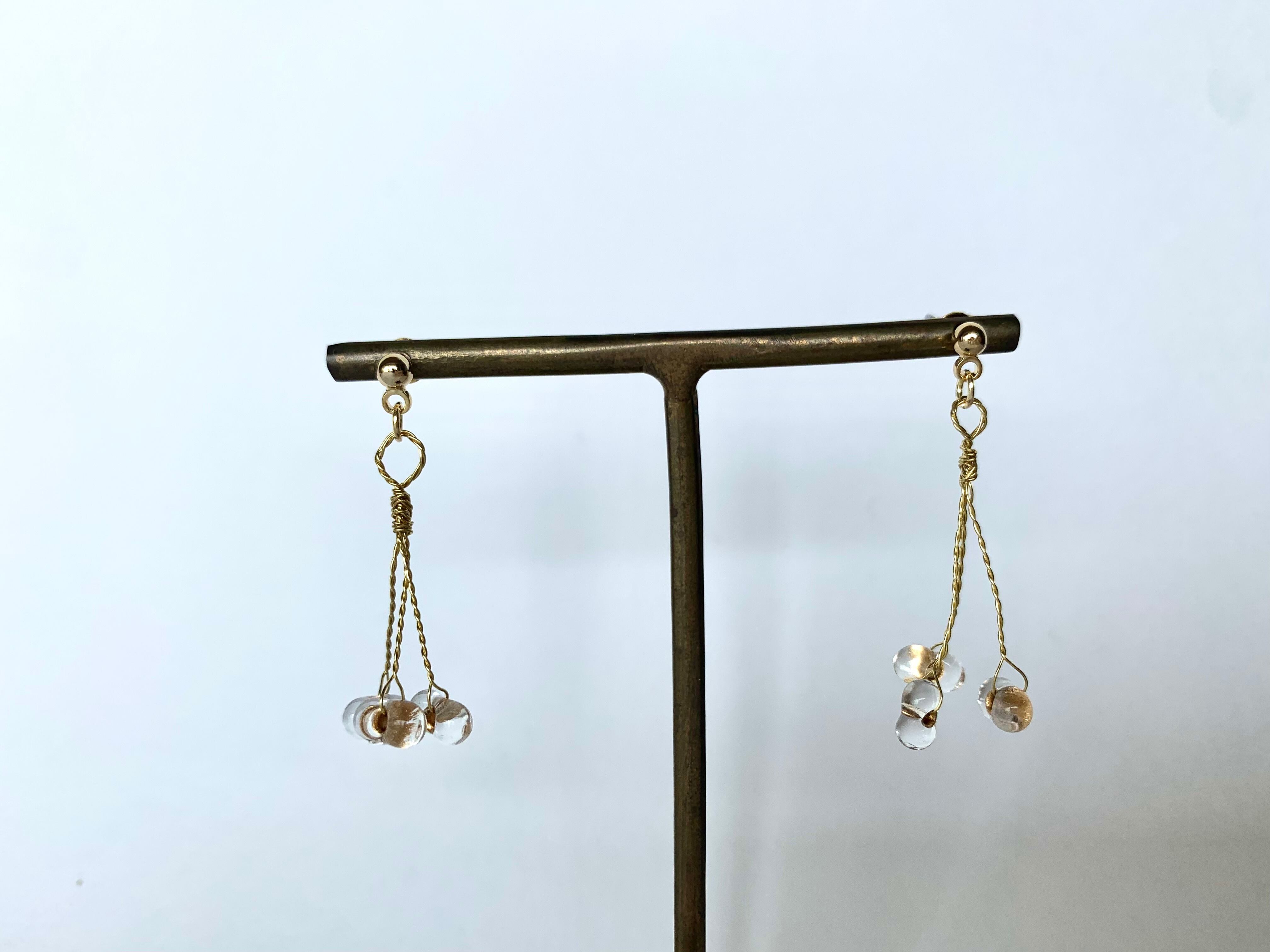 クリアの輪の中にゴールドが少し入ったぷっくりとしたビーズを、枝から実がなっているようなイメージで作ってみました。